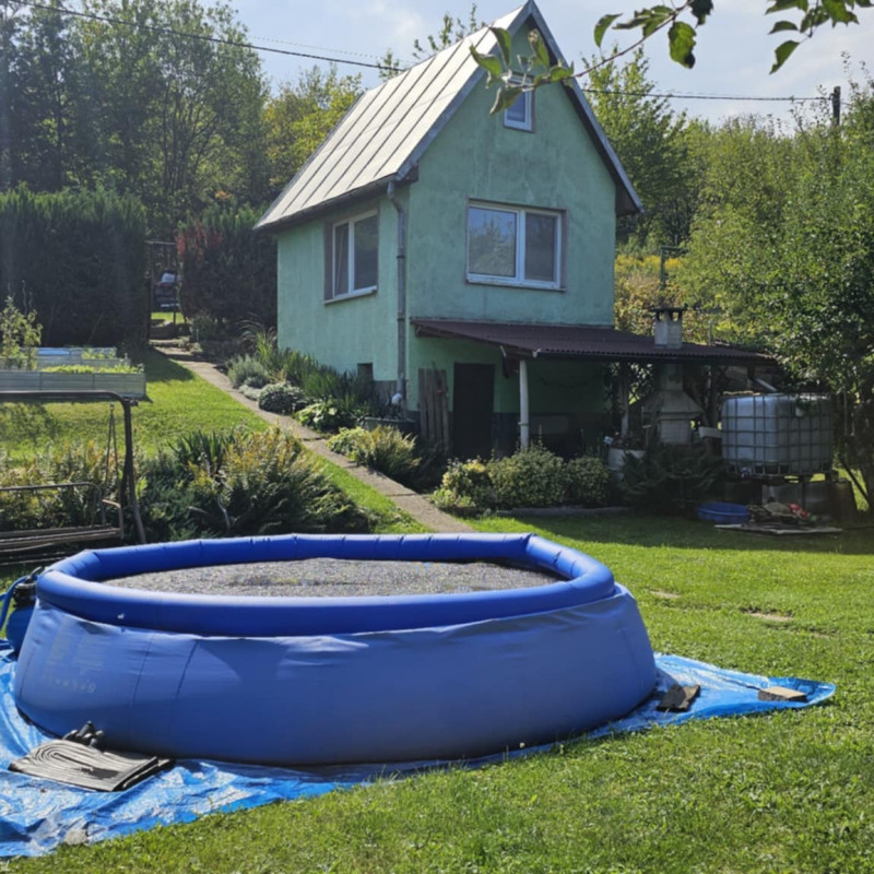 Na pozemku sa nachádza murovaná chata s terasou a s murovaným krbom na opekanie, upravená časť pozemku s možnosťou položenia bazénu, zberné nádoby na dažďovú vodu, ovocné a okrasné stromy, kríky, vyvýšené záhony na pestovanie zeleniny a ohnisko na opekanie.